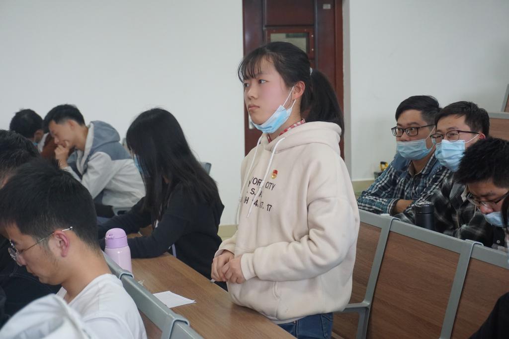 自由交流环节,020201团支部的陈宇同学问到青年学生应如何加强党史学习。张老师表示,学好党史要把握主流主线,学习形式可以多种多样,开展党史书籍读书会、观看党史教育影片、实地参观红色教育基地、交流学习成果参与实践活动等都是很好的学习方式。