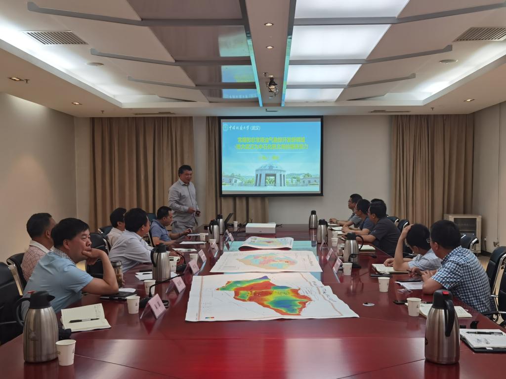 双方就油田分公司2021年油气成果暨勘探部署、塔里木盆地中-下奥陶统顶面深度构造等内容进行深度探讨。