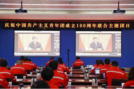 与会人员集中学习习近平总书记在庆祝中国共产主义青年团成立100周年大会上的重要讲话精神。
