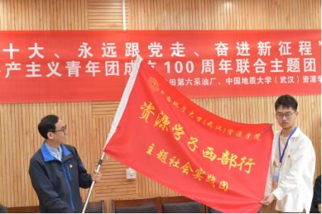 “‘石油战线始终是共和国改革发展的一面旗帜’,‘能源青年’要以此次主题团日为契机,大力弘扬地质精神、石油精神,肩负起资源能源强国事业,接续举好这面旗帜。”中国地质大学(武汉)团委书记朱荆萨致辞。她讲到,希望采六青年、资源学子心手相连,永久奋斗、矢志创新,闯“无人区”、破“天花板”、当“探路者”,成为习近平总书记殷切期盼、祖国和人民殷切期盼的先锋。