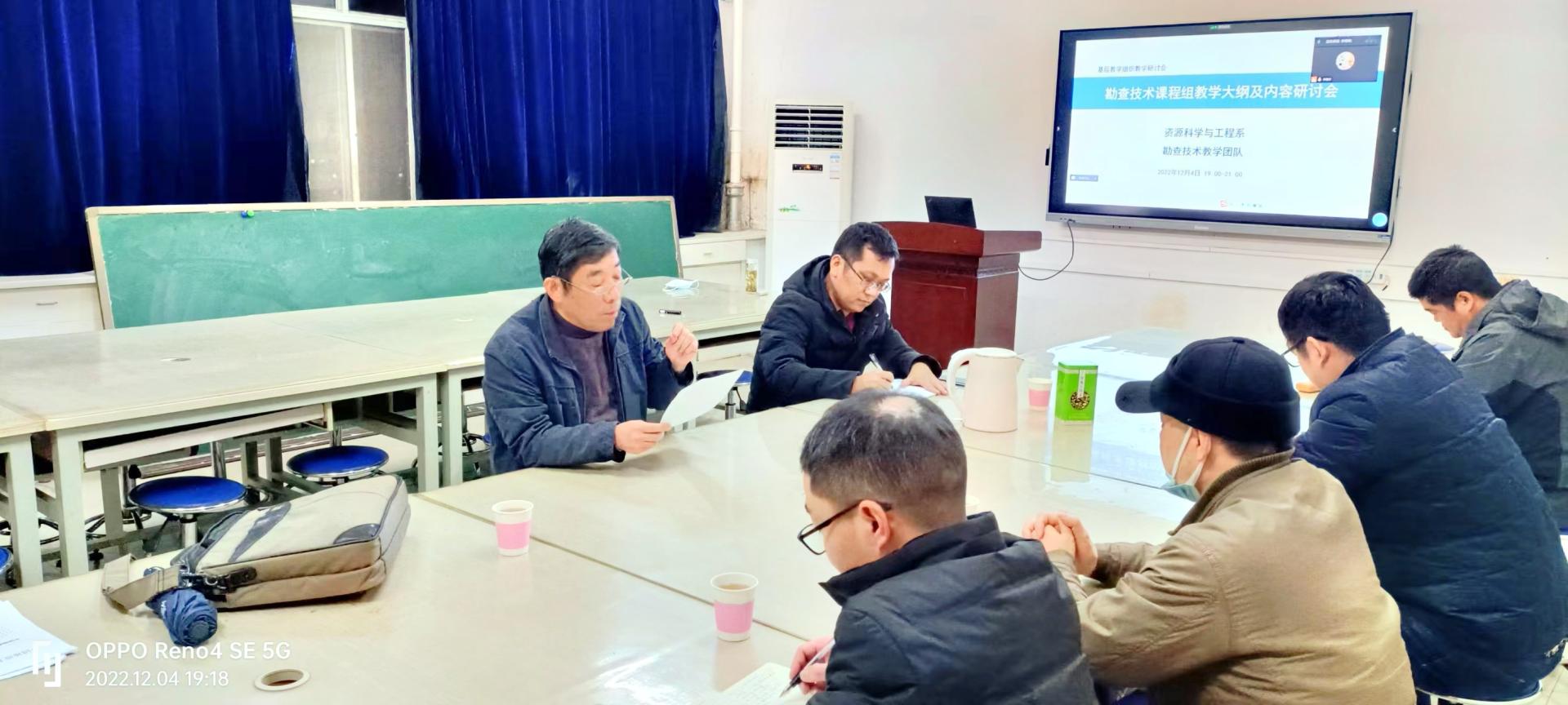 魏俊浩教授对会议内容进行了总结。通过研讨,一致认为勘查技术课程组教学大纲和内容修订重点在于:(1)在课程内容体系完善基础上,要突出课程特色和重要内容;(2)加强基本理论、基本知识、基本技能训练,同时适当补充部分矿产勘查新技术,让学生学以致用;(3)进一步加强室内理论教学与野外实践的衔接;(4)进一步加强思政教育与专业知识的融合。