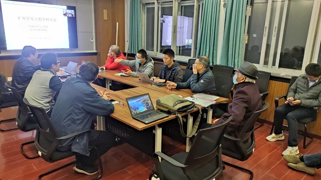 11月25日,资源科学与工程系矿床学课程组在主楼527会议室开展了教学研讨会。课程组所有成员通过线上和线下两种方式参与教学讨论。重点讨论矿床学实践教学中存在问题、课程目标及下一步的计划安排。研讨会由吕新彪教授主持,曹晓峰副教授担任会议秘书,学校教学督导马立祥老师全程参加会议。