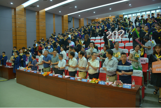 全体院领导、各系书记和主任、毕业班班主任、教师代表、院直全体老师、在校生代表、全体2022届毕业生出席本次典礼,党委副书记谭文伦主持典礼。