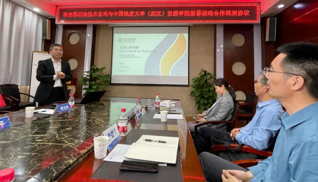 会上,明治良作《从岩心到油藏》的专题术报告。双方人员围绕地震反演、测井解释、数值模拟、人才培养以及产学研结合等方面开展深入交流与探讨。