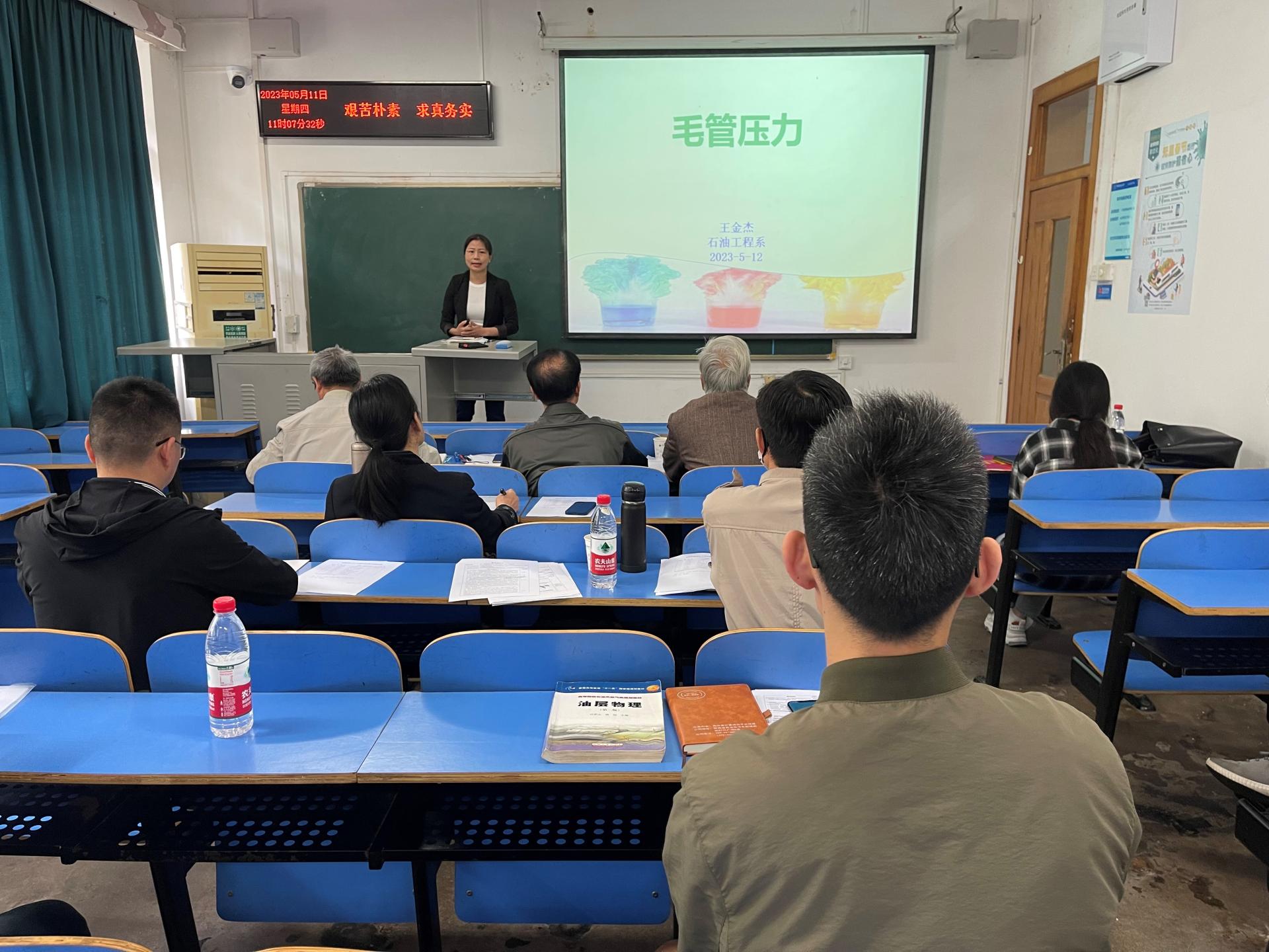 朱钢添老师讲述了《石油及天然气地质学》中的油气成因概述与有机成因,逻辑清晰、多媒体规范。他由专业关键词在数据库搜索的文献数据指出学校在相关专业领域做出了重要的工作,提升学生对专业的认同。孟庆帮老师用清晰的示意图和公式推导讲解了难度较大的《油气层物理学》中的单组分体系的相态特征,重难点突出,课程具有层次性。伏海蛟老师在《普通地质学》的断层的定义与分类讲述中融入了大量的地质现场图片,使学生获得直接的感受,理论与实际相结合。他讲解了我国古代诗人笔下的地质现象,两者结合引起学生对地质的学习兴趣。付乐兵老师在《矿产勘查理论与方法》的矿床勘查与储量估算的讲述中通过回顾上节课、提问等方式帮学生梳理知识,启发思维,他在介绍课程起源时提到威廉希尔