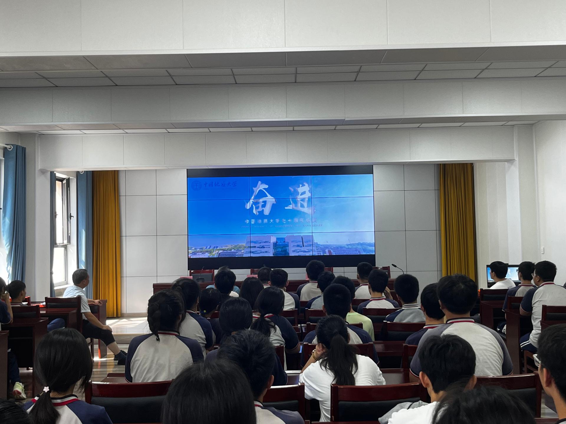 会前,与会师生共同观看中国地质大学校庆70周年宣传片《奋进》。