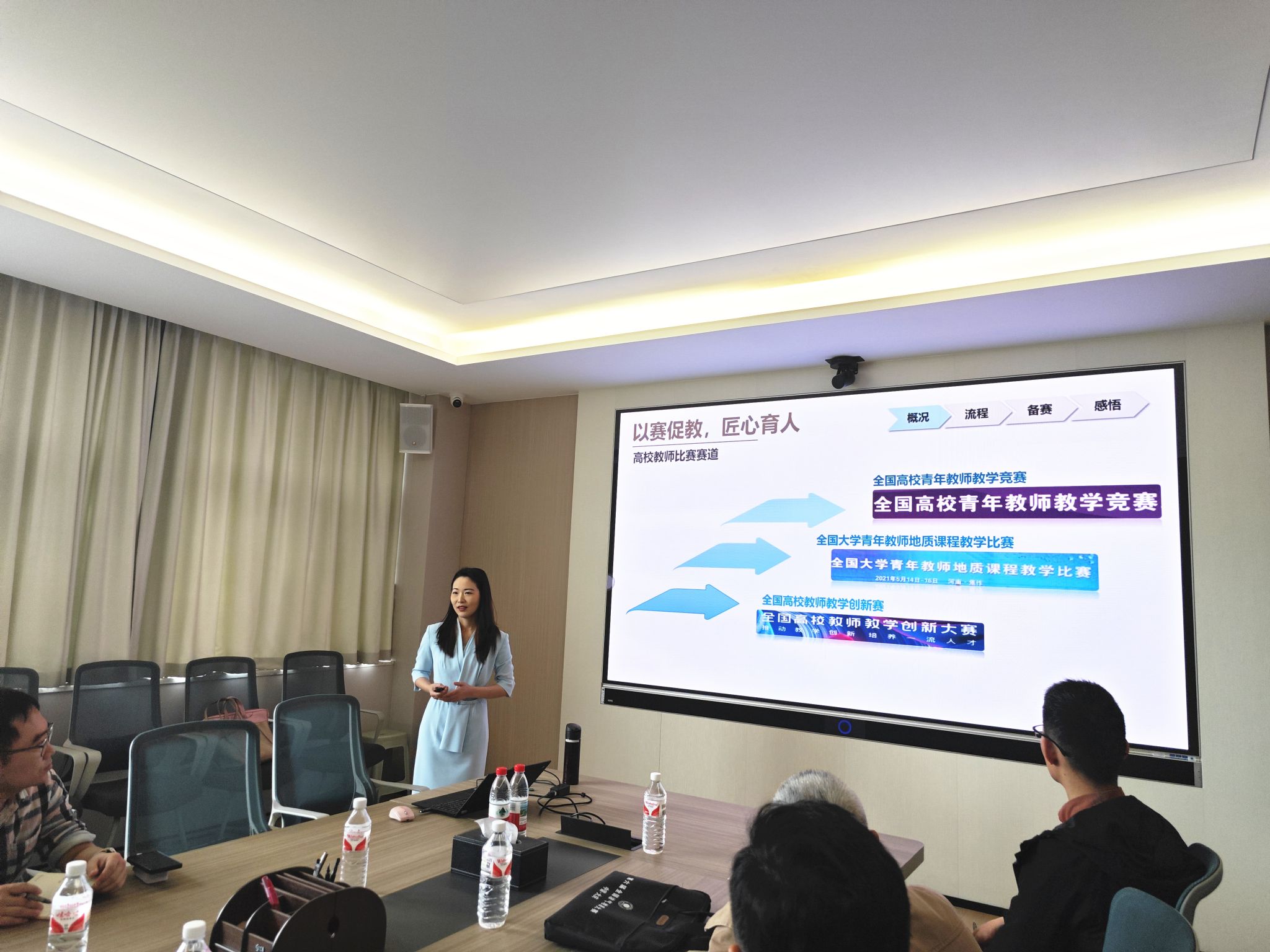 威廉希尔 副院长李占轲主持,他介绍了威廉希尔 设立“资源教育教学论坛”的背景和意义,并介绍了陈思老师的教学和获奖经历。陈思老师以“从青教赛到优课堂——教学能力提升的进阶之路”为题作报告,从“以赛促教,匠心育人”和“以建促学,优课铸魂”两方面分享了青教赛经验和课程建设经验。她总结青教赛的进阶路径分为5步:强化教学设计、打磨教学细节、提升语言艺术、形成教学风格、从容应对教学节段抽选,可以从双语教学、AI赋能、教具完备等方面进行内容提升。她谈到参加青教赛的感悟认为教学时要思考“老师到底教什么,学生到底学什么”,要以学生为中心,让学生思维“长见识”“能量转化”,面对人工智能、AI的挑战,要注重培养学生的思维更新和思辨能力。她结合自己的课程介绍了课程建设经验,重点介绍了课堂教学、实践教学、科教融合和学科交叉的课程建设方法体系。与会教师就教学投入、课程互动、教学模式优化、如何利用AI建设课程等问题与陈思老师进行了交流。湖北省教学名师徐思煌老师认为设立“资源教育教学论坛”营造了威廉希尔 教育教学交流的良好氛围,鼓励年轻教师多参加论坛并充分发挥教学团队的作用不断成长。