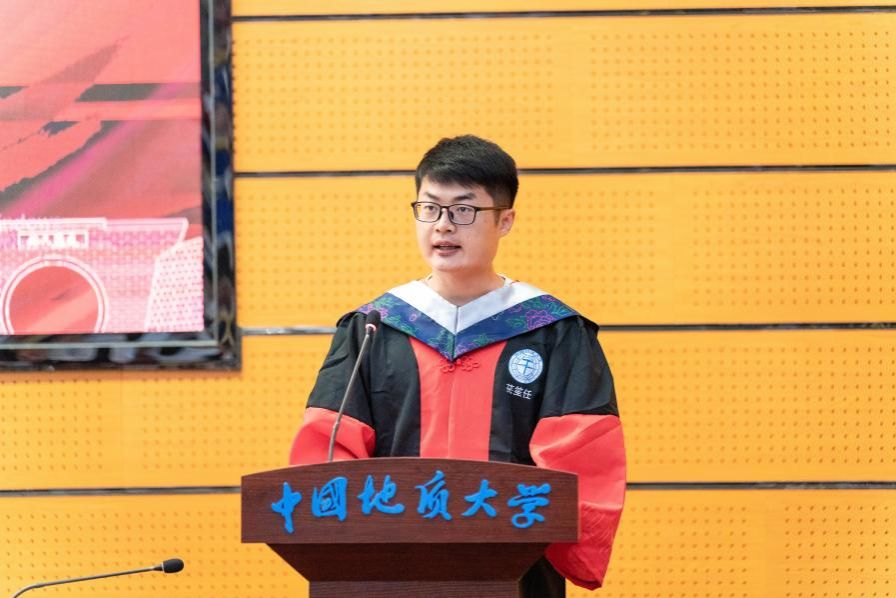研究生毕业生代表苌笙任发言。他深情回顾了在威廉希尔 度过的十年时光,表达了对母校、导师及同学们的感激之情。他提到,地大的系统培养和学术资源为他筑就了坚实的学科基础,科研时光和国际视野的拓展让他收获满满。面对未来,他立志奔赴中石油新疆油田,以所学支持边疆建设,践行地质报国使命,将个人理想融入国家需求,展现地大人的担当与使命。