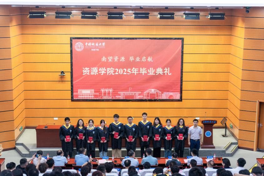 本科毕业生代表吴佳桁发言。他带着对师长、亲友的深深感恩,回顾了四年大学时光的丰富经历与显著成长。他感慨,大学中的所见所闻、所学所得、所思所感,不仅让他收获了知识,更赋予了他面对挑战的底气与砥砺前行的动力。吴佳桁表示:面对未来,他会立志投身地质行业,为保障国家能源资源安全贡献力量。同时,他勉励同学们秉持初心、心怀家国,在新时代的征程中继续奋斗,永远做有梦少年,共同书写无愧于时代的壮丽篇章。