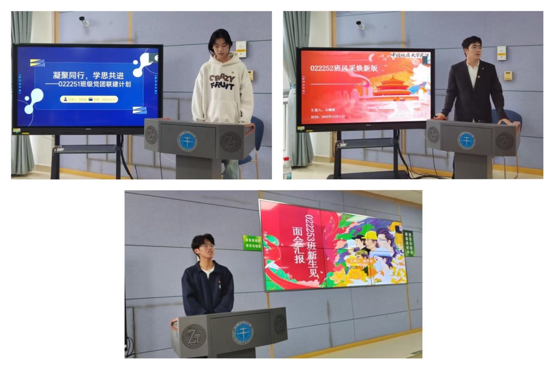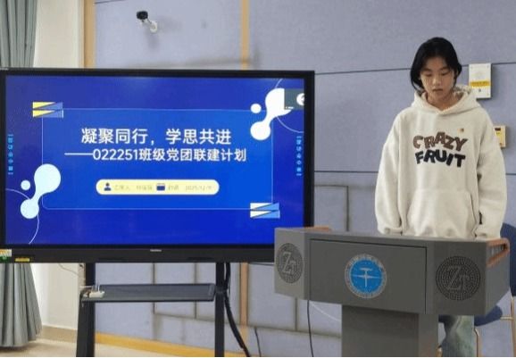 2025级石油工程班级团支书介绍和党团联建方案。刘瑶瑶、石璐源、赵子渊三个班级团支书分别从成员构成、学习情况、班级活动和班级文化等方面介绍班级基本情况,并从计划制定、联系帮扶、主题联学、榜样示范、学风塑造与志愿服务讲解结对领航“六个一”工程建设内容。