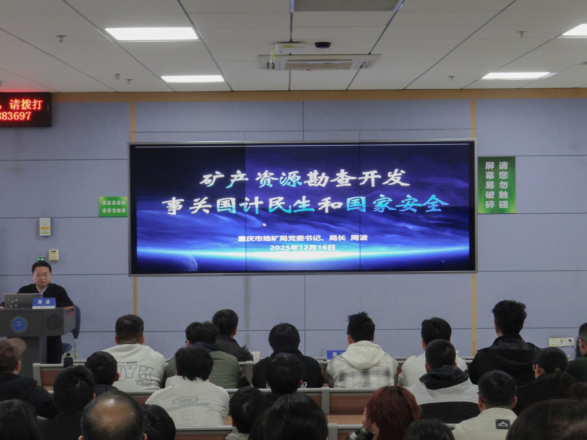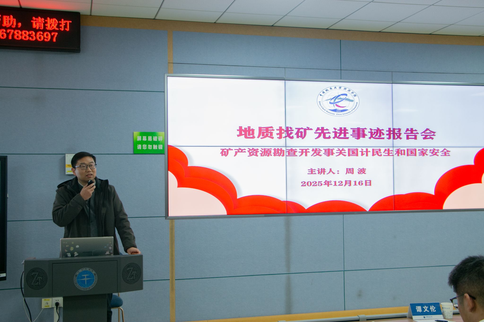 于东教C座C0206教室举办2025年秋季学期地质找矿先进事迹报告会。重庆市地质矿产勘查开发局党委书记、局长周波受邀主讲,重庆市地质矿产勘查开发局相关领导、专家,威廉希尔