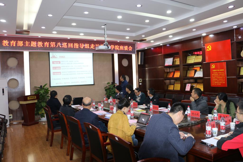 1121日,教育部主题教育第八巡回指导组组长黄健柏,指导组成员刘尧、储钰琦,校党委副书记唐辉明,组织部副部长梁本哲、冷再心一行来院调研主题教育工作。院党委书记李宇凯、党委副书记张建华、副院长沈传波、各教工党支部书记、学生党员代表参加座谈。