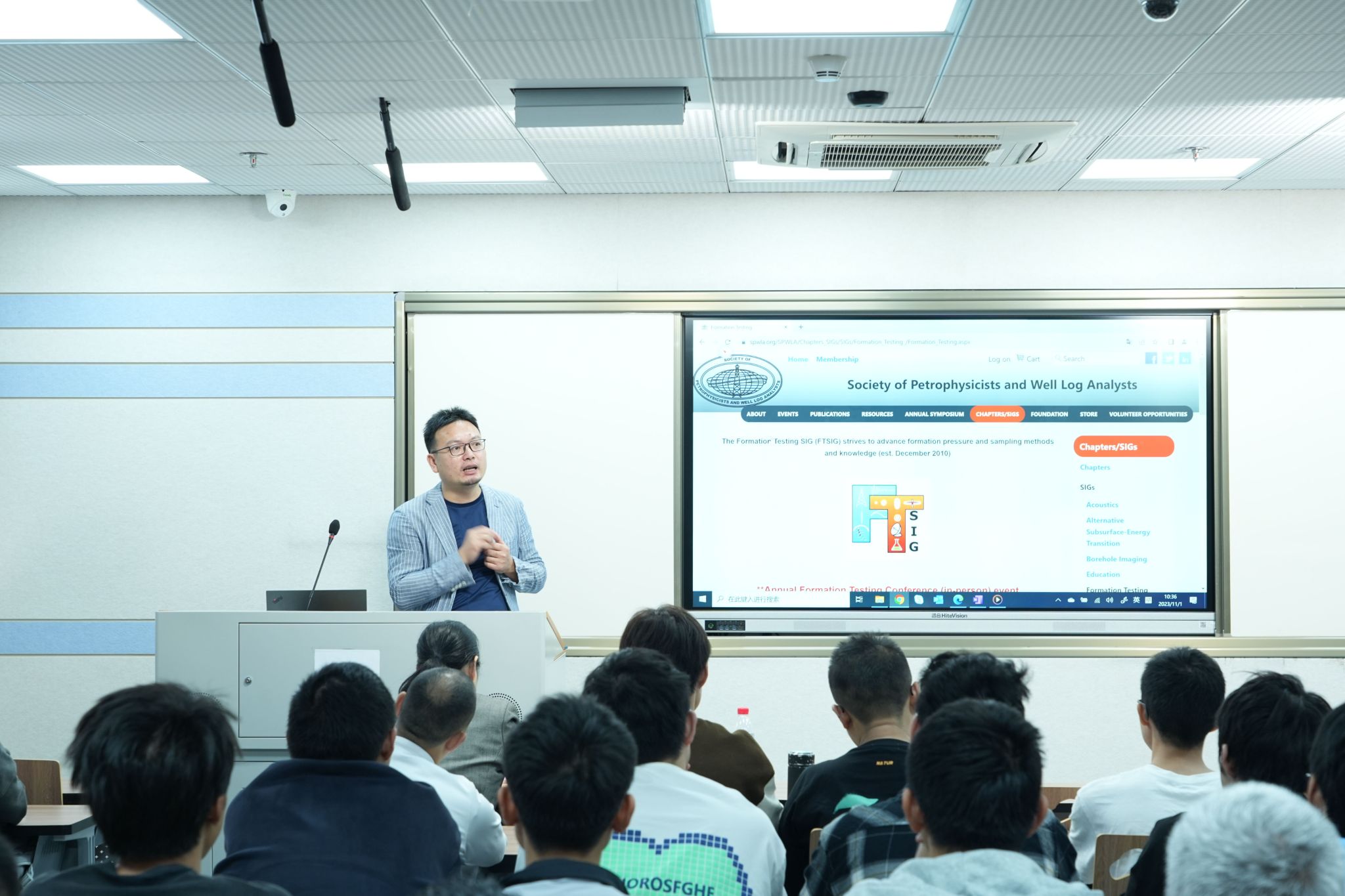 石油工程系毕业生雷国文博士结合本科在校的学习经历及国外留学、工作经历为《油气开发地质学》MOOC课程录制“地层测试与应用”见面课。他通过电子版书形式,与学生实时互动,注意引导,循循善诱引出地层测试的技术原理和思路,调动学生听课的积极性。雷国文为美国贝克休斯公司科研经理、海洋石油工程专家,主要从事石油工程与人工智能交叉融合、油气数字技术应用和油气工业智能化应用的国际前沿领域研究,在国际知名油田服务公司从业10余年(如北海油气田)。