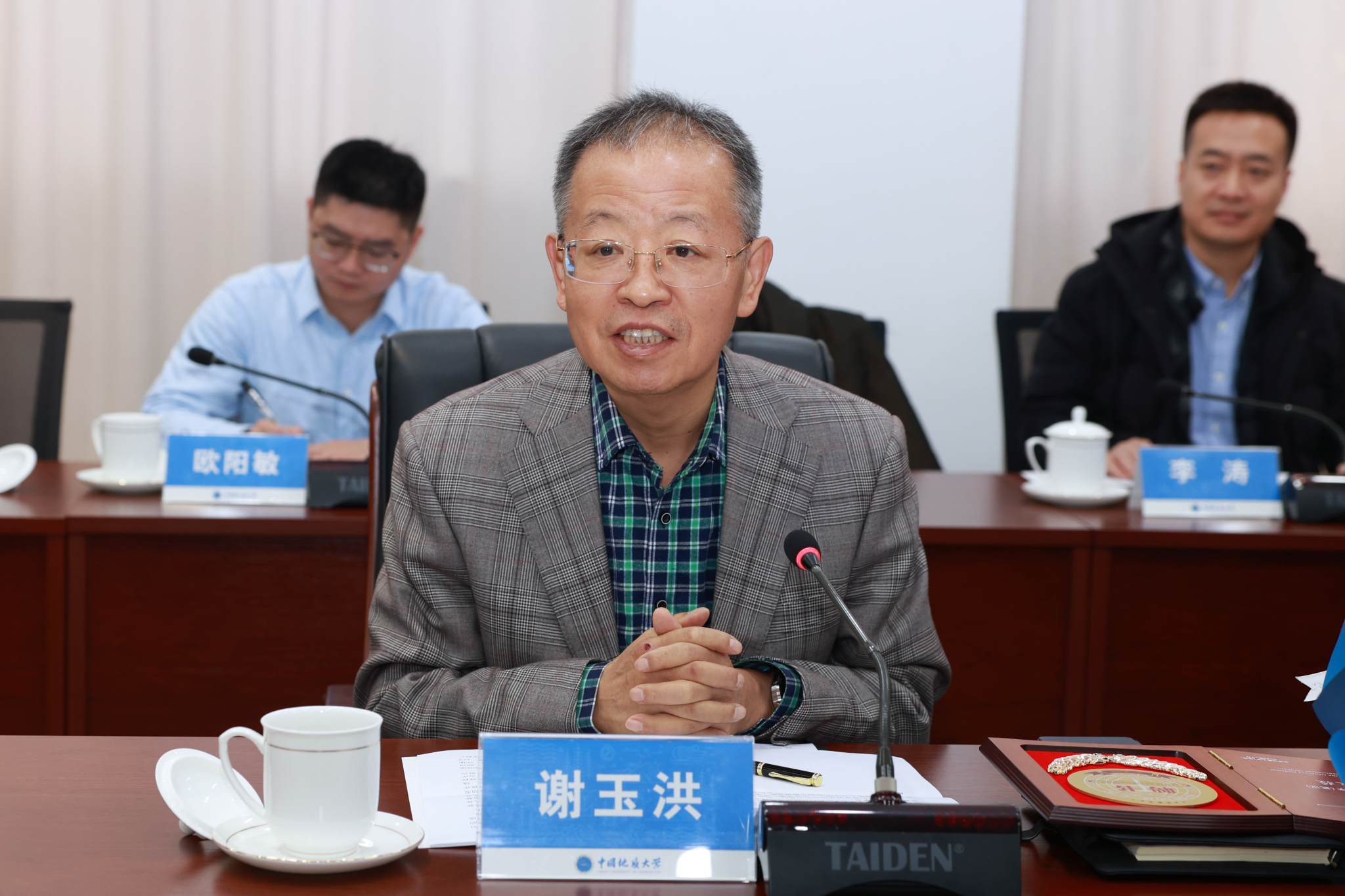 王焰新表示,此次谢玉洪担任我校荣誉教授,是学校落实人才强校战略的重要举措,有利于充分发挥院士作为战略科学家的引领作用。他提到,学校围绕能源地质科学前沿和国家能源重大需求,与中海油集团及所属单位保持着长期稳定的战略合作关系。希望今后双方不断完善人才交流机制,开展专家双向挂职、互聘机制,探索校企联合培养人才方式,保障实现人才培养共育、平台共建共享、技术合作共融等目标,共同培育出一批有原创性和广泛影响力的重大成果,为保障国家能源安全联合贡献“海油—地大方案”。