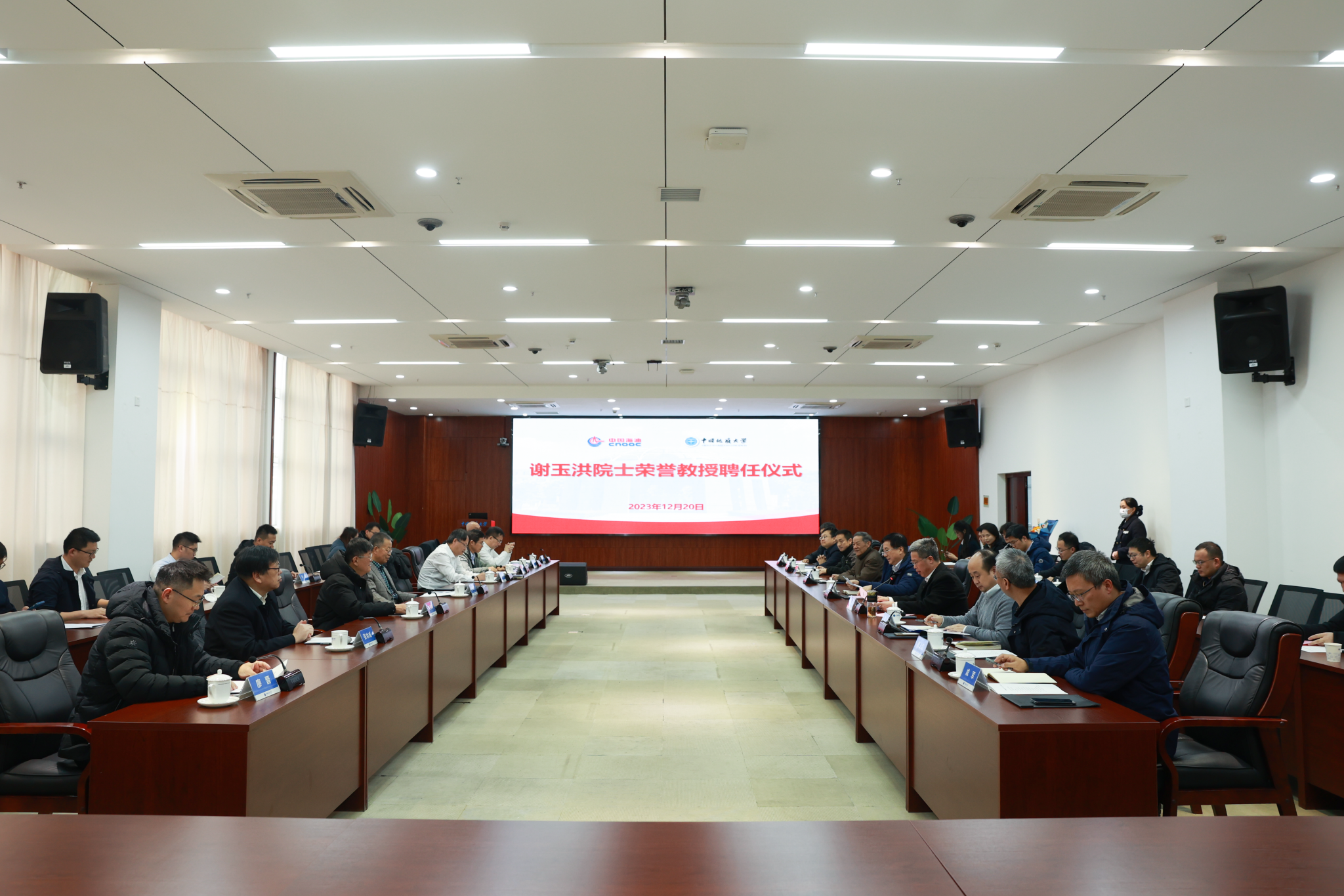 为推动学校人才队伍建设和学科专业发展,12月20日,我校举行谢玉洪院士荣誉教授聘任仪式。中国海洋石油集团有限公司海南分公司副总经理兼总地质师吴克强,湛江分公司风险委专家王振峰,海南分公司总经理助理兼研究院党委书记、院长裴健翔,中海油研究总院集团专家张功成,我校校长王焰新院士,副校长王华,原副校长姚书振及双方相关单位负责人等参加仪式。
