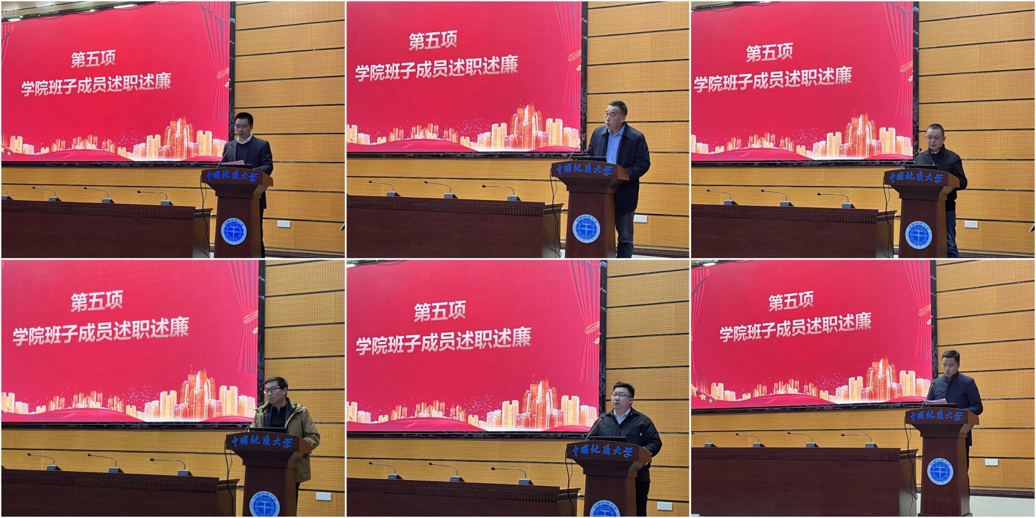 班子成员严德天、朱红涛、沈传波、谭文伦、钟志、李占轲依次述职述廉。