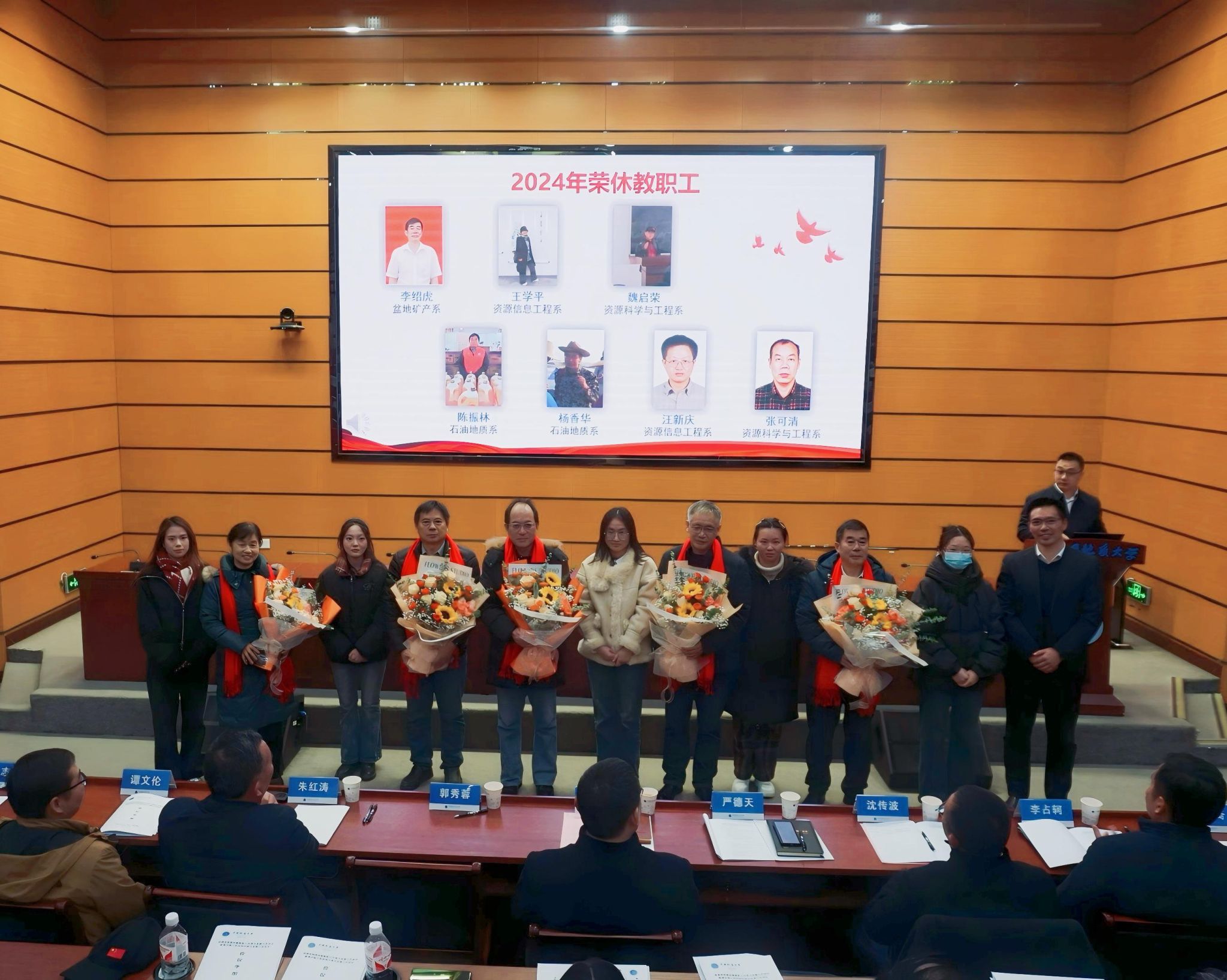 汪再奇为2024年度“最美资源青年教工”获得者张恒、陈思、张凯、李晶、刘睿颁奖。