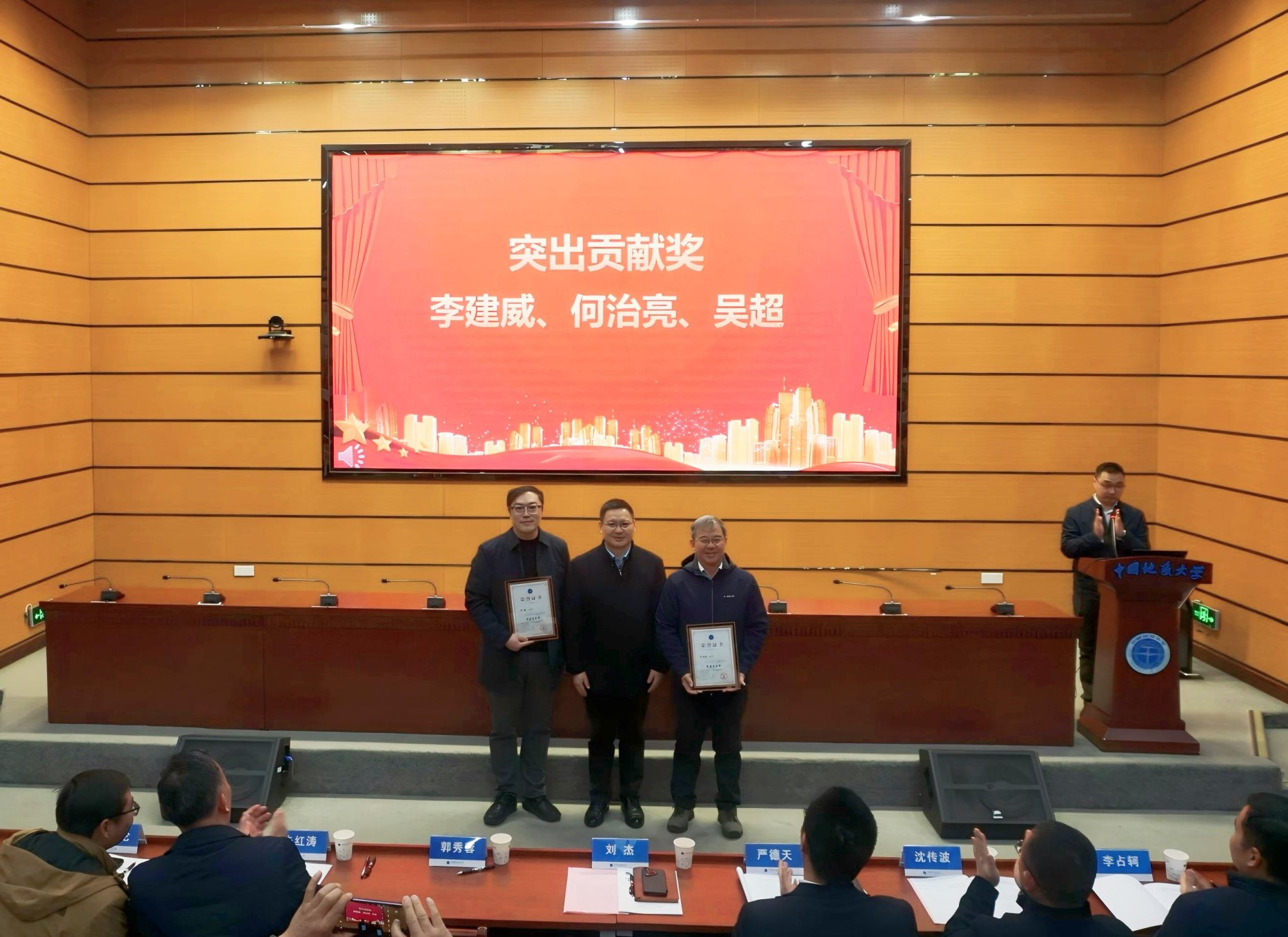 “突出贡献奖”获得者何治亮、吴超颁奖。