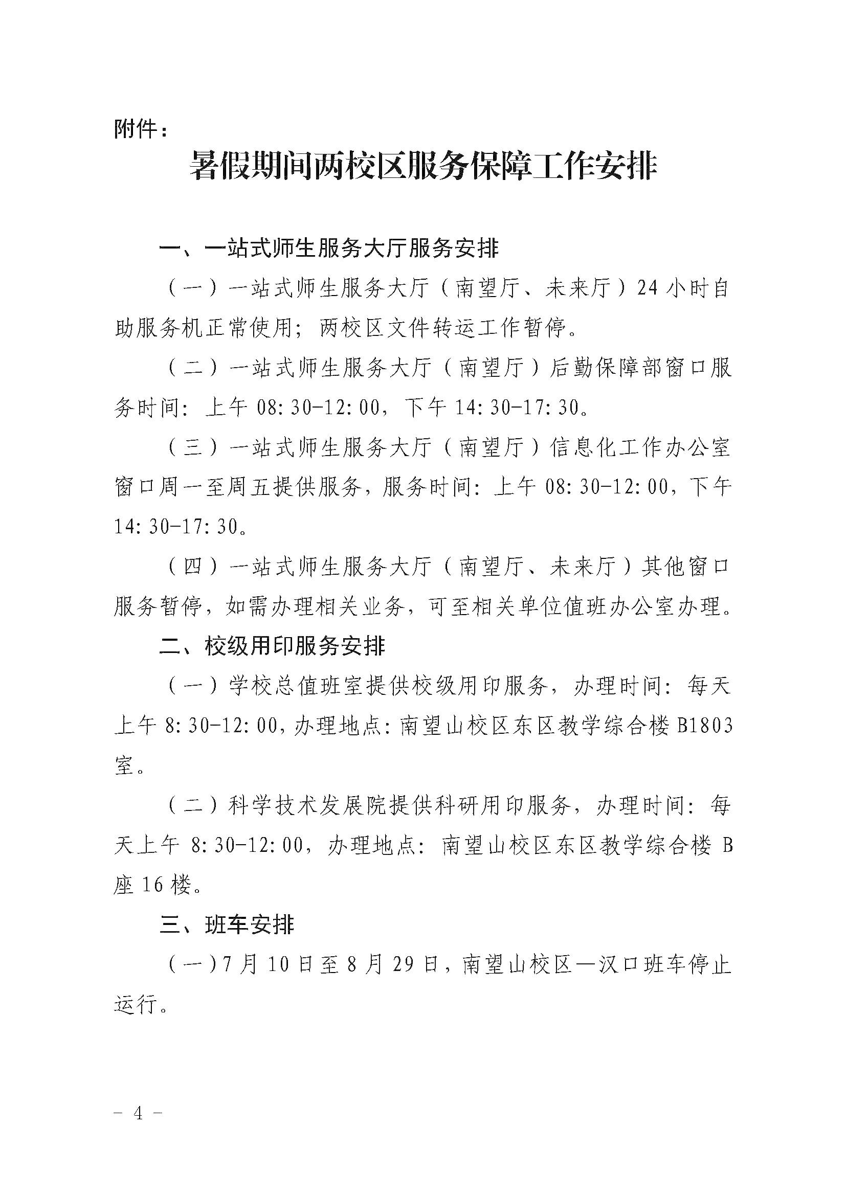 中国地质大学(武汉)关于2024年暑假放假安排的通知