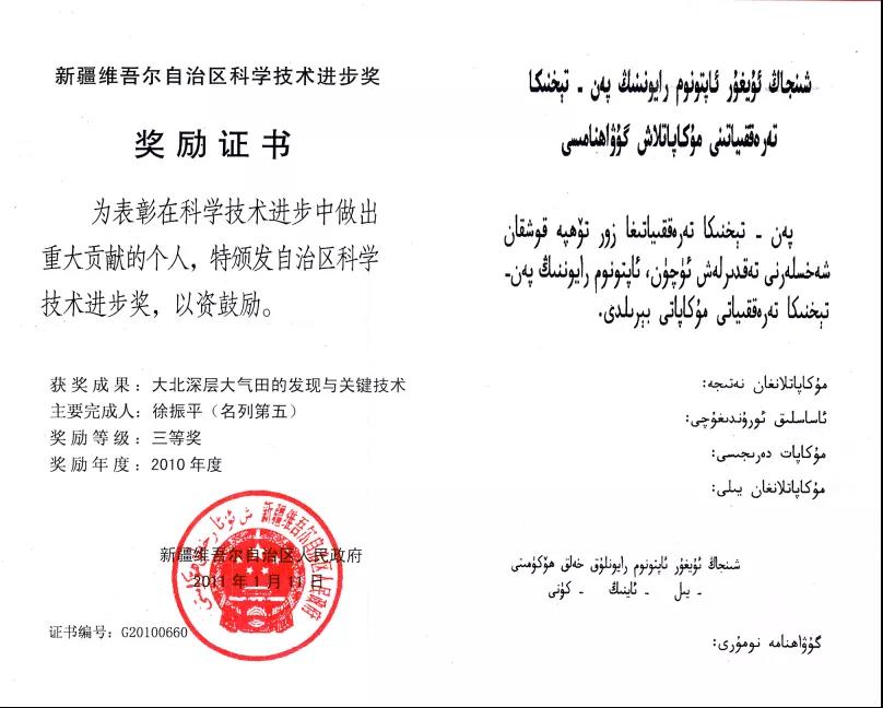 不甘现状,谋划库车新区新领域两个万亿方潜力区,为新疆5000万吨油气发展目标贡献力量,作为勘探科研人员不能甘于现状、原地踏步,徐振平带领库车新区勘探科研团持续构思新领域、发现大场面,他们又提出了温宿-西秋隆起北缘万亿方潜力区和吐格尔明及周缘万亿方潜力区,一直为塔里木油田的持续增储上产寻找新的资源基础。徐振平带领科研团队,夜以继日的开展勘探研究工作,通过对温宿-西秋古隆起周缘石油地质综合研究,梳理和总结有利成藏要素,提出了古木别兹构造带浅层勘探领域,2018年部署古木1井获得黑油重大发现,为塔里木油田新发现一个千万吨的油藏,找到了一个浅层碎屑岩石油勘探领域,也为温宿-西秋隆起北缘万亿方潜力区揭开了盖子;在他的脑中,新区勘探研究区块都是好的,通过深化地质研究与认识都是未来的战略领域,现阶段,他带领库车新区勘探团队正在开展吐格尔明及周缘侏罗系油气勘探研究工作,将已发现的迪北、吐东2气藏逐步评价扩大,将未发现的广阔领域逐步实现勘探突破,争取用最短的时间推动一个新的万亿方大气区的诞生,他就是这样不停的向前走,不停的为库车新区油气勘探谋划可持续的美好蓝图。