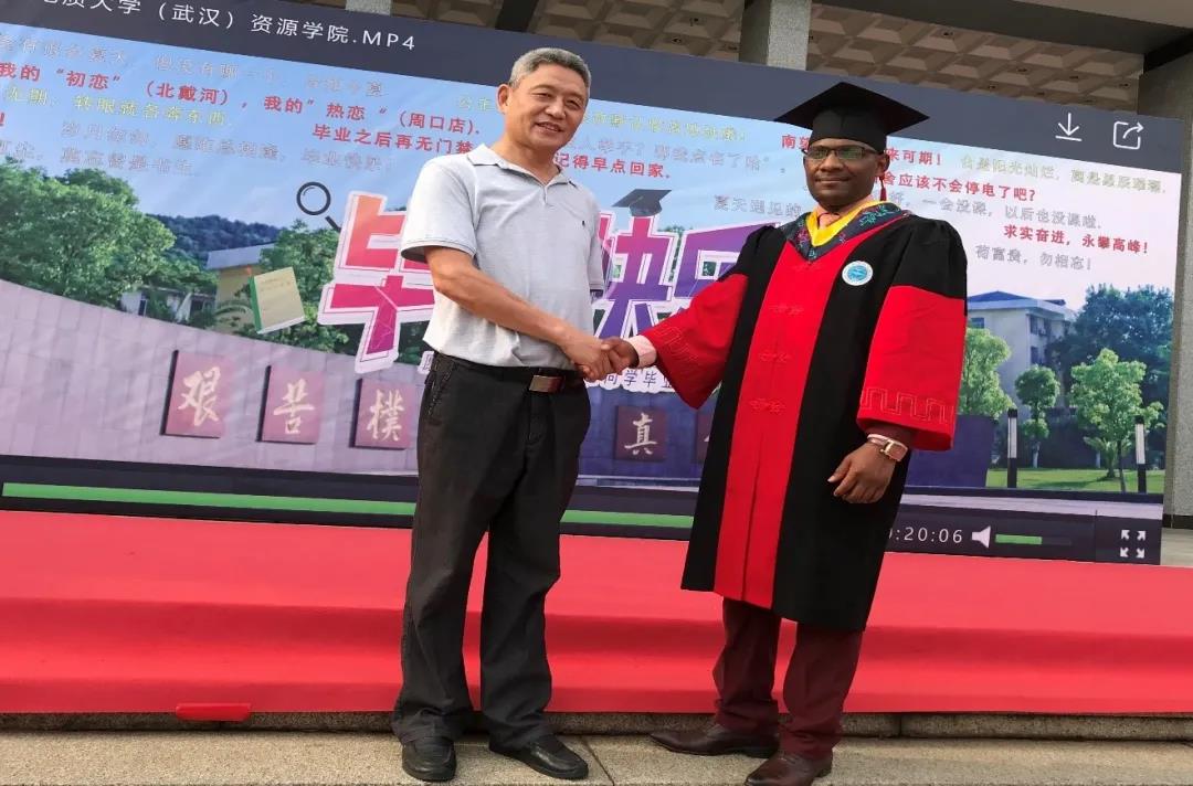 的姚光庆教授,“他把我当作他的儿子一样,对我非常好,很照顾我。疫情刚刚开始的时候,他很担心我,天天打电话联系我问我是否有什么问题。那时候因为不能见面,我们就在网上讨论我的学习和毕业论文。”当阿拉丁拿到自己的博士研究生毕业证书时,他第一个想到的就是导师姚光庆教授,“他帮助我了很多,在他的指导下,我发表了一篇国际文章。我能从地大顺利地博士毕业离不开他给予我的指导和帮助。”