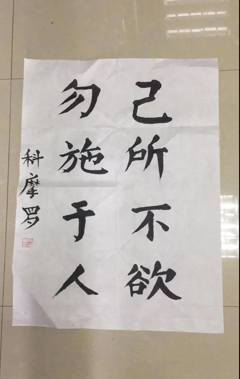 的舞龙队。”值得一提的是,阿拉丁不仅中文说的特别好,他还特别喜欢中国的书法,并且特意展示了他书写的“己所不欲,勿施于人”。