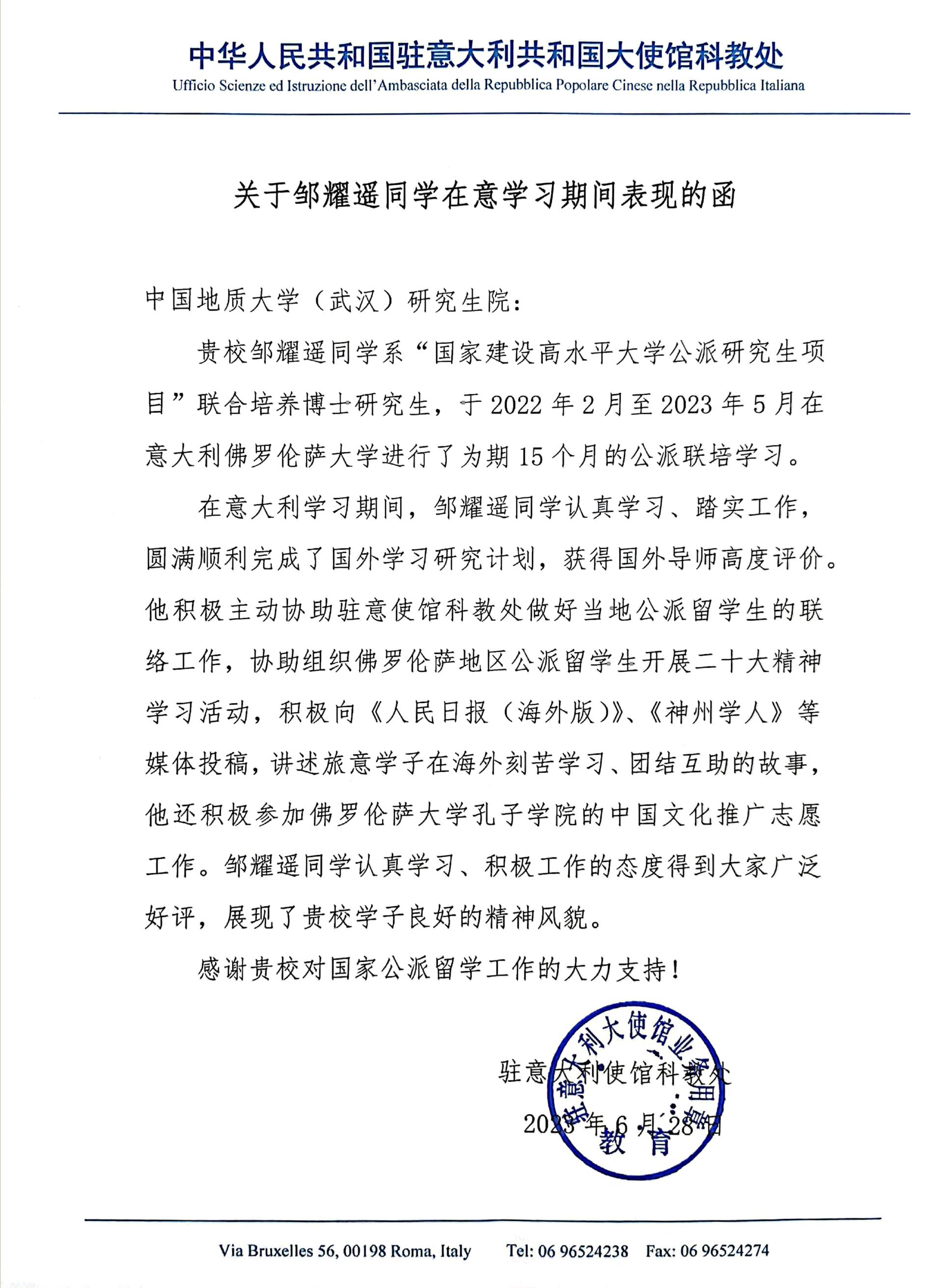 矿产普查与勘探专业2019级博士研究生,我校第十三次党代会代表、校博士生讲师团成员。在沈传波教授的指导下,他主要开展含油气裂谷盆地的三维构造分析、构造热年代学及构造物理模拟实验研究,曾获研究生国家奖学金、校级优秀研究生标兵、校优秀学生党员等荣誉称号。2022年2月,获国家留学基金资助前往意大利佛罗伦萨大学进行博士联合培养,期间积极向《人民日报(海外版)》《神州学人》投稿,讲述旅意学子在科技合作与文化交流中的奋斗故事,获评全意学联“旅意学子优秀志愿者”,获我国驻意大利大使馆科教处致函表扬。